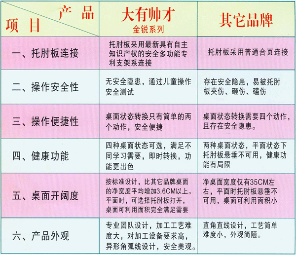 公司以北京中央民族大學人體工程學知名專家蘇垣教授為首的專項科技研發(fā)小組,經多年潛心研究,根據人體工程學原理,在健康學習用品用具領域,取得多項領先的自主知識產權。產品涉及并覆蓋健康矯姿桌椅、減重書包、健康護眼燈具、校用桌椅器具等十二大系列,一百六拾余個品種。由于其領先的設計,獨到的功效性,有效矯正青少年不良坐姿,防近視、防駝背,降低疲勞,提高學習效率等,在全國各地被廣大學生及家長喜愛和推崇,并相繼被“家具與環(huán)境”、“人類功效學”等全國多家知名報紙、雜志發(fā)表針對性文章,大力推介。