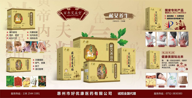 “百年艾益堂”是惠州市好優(yōu)康醫(yī)藥科技有限公司旗下主打品牌,多年來(lái)專注于蘄艾養(yǎng)生護(hù)理,其旗下主打產(chǎn)品有蘄艾萬(wàn)應(yīng)足貼、萬(wàn)應(yīng)艾灸貼、蘄艾足浴寶以及蘄艾沐浴包等,源自李時(shí)珍故里的“艾”,具有抗菌、消炎、增強(qiáng)寶寶體質(zhì)等作用,全面呵護(hù)中國(guó)寶寶健康成長(zhǎng)!