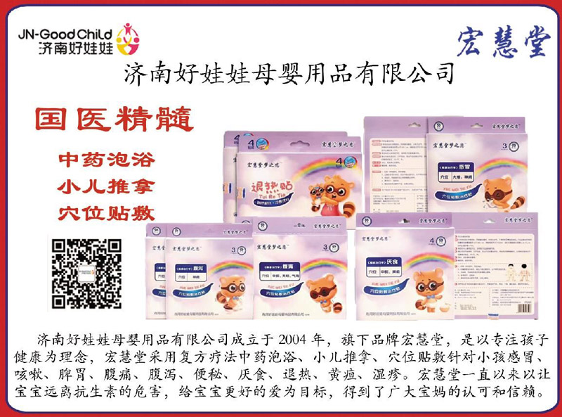 濟南好娃娃母嬰用品有限公司成立于2004年,旗下品牌宏慧堂,是以專注孩子健康理念,宏慧堂采用復(fù)方療法中藥泡浴、小兒推拿。穴位貼敷針對小兒感冒、咳嗽、脾胃、腹痛、腹瀉、便秘、厭食、退熱、黃疸、濕疹。宏慧堂一直以來以讓寶寶遠離抗生素的危害,為寶寶更好的愛為目標,得到了廣大寶媽的認可和信賴!