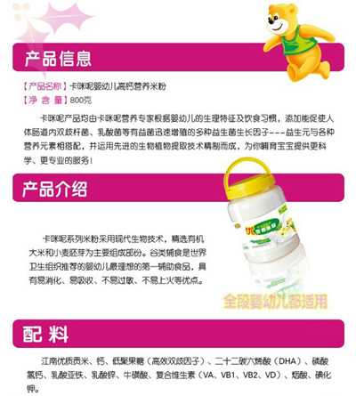 卡咪呢乳清蛋白嬰幼兒營養(yǎng)米粉是上?ㄟ淠啬笅胗闷酚邢薰酒煜庐a(chǎn)品,精選優(yōu)質(zhì)大米制作,特別添加乳清蛋白和益生元,提高寶寶抵抗力,促進寶寶changdao的消化吸收,上市以來廣受父母消費者的青睞。