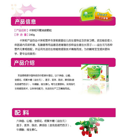 卡咪呢小兒板藍(lán)根顆粒是上?ㄟ淠啬笅胗闷酚邢薰酒煜庐a(chǎn)品,專為嬰幼兒設(shè)計(jì),專業(yè)、安全,幫助寶寶可以預(yù)防感冒抵抗病毒,是廣大父母育兒的好幫手?ㄟ淠匦喊逅{(lán)根顆粒不含任何色素、防腐劑,安全放心。