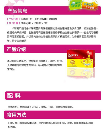 上海卡咪呢母嬰用品有限公司主營母嬰營養(yǎng)保健食品,產(chǎn)品原料來自有機農(nóng)業(yè)生產(chǎn)體系或野生天然產(chǎn)品,通過國家相關(guān)有機食品認證機構(gòu)的嚴格檢測認證,現(xiàn)面向全國空白市場區(qū)域誠招代理商加盟。