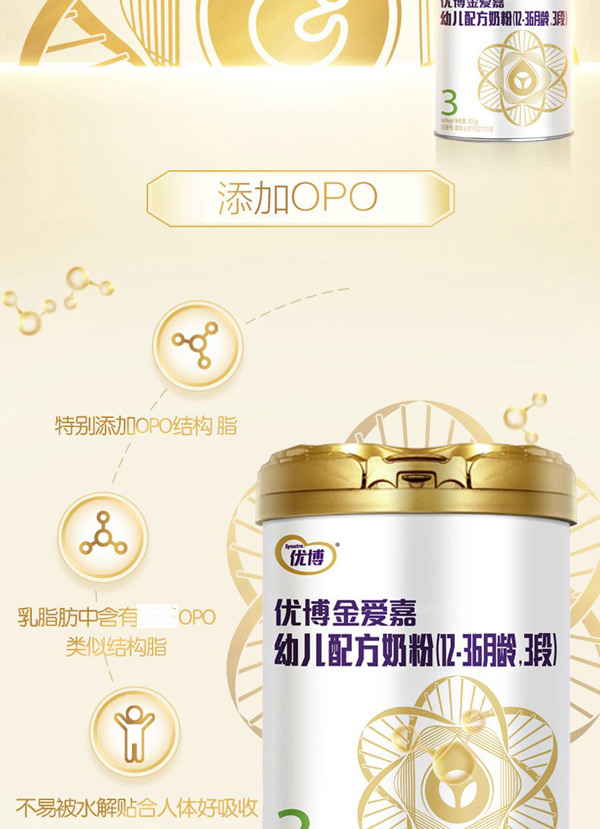 • 優(yōu)博金愛(ài)嘉幼兒配方奶粉(12-36月齡,3段)聽(tīng)裝800g