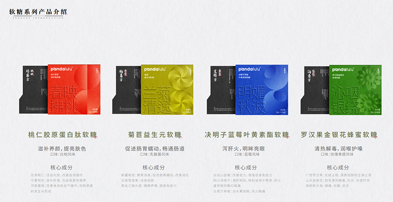 pandalulu產(chǎn)品理念:解構(gòu)中醫(yī)組方,精準匹配當下國人保養(yǎng)需求,匯集全國優(yōu)秀原廠地食材,采用前沿生物科技,打造集美感、新鮮感、文化感健康食品,引領東方健康時尚。