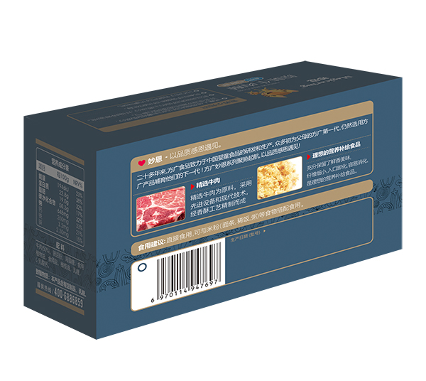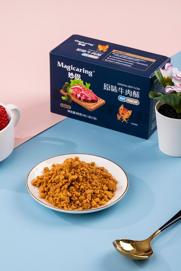 新鮮原料,先進炒酥工藝,纖維細小,入口即化;0添加醬油、0添加香精、0添加色素,0添加防腐劑;添加乳酸鈣、橄欖油、乳糖(促進鈣吸收)。