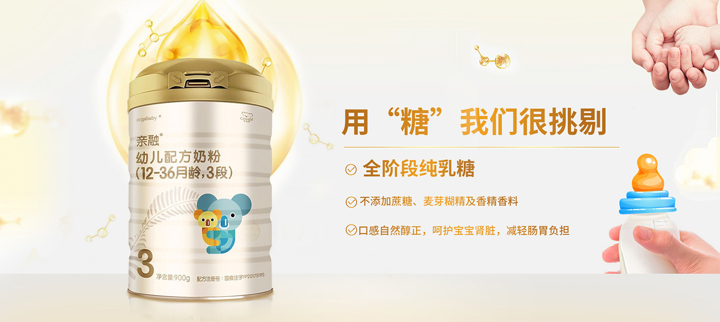 品牌名稱:親融 主營(yíng)產(chǎn)品:親融嬰幼兒配方奶粉 品牌特色:純凈奶源 濕混工藝