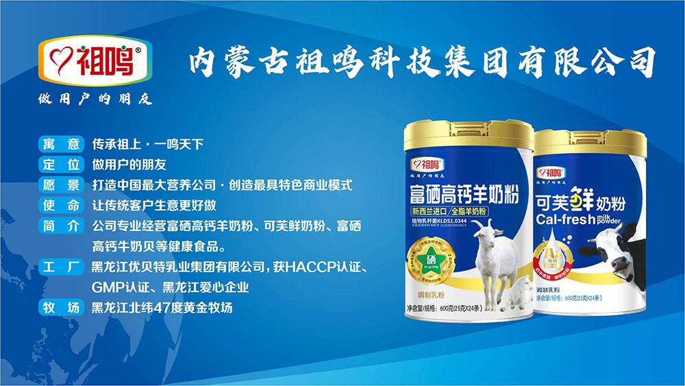 內蒙古祖鳴科技集團有限公司旗下祖鳴奶粉,做用戶的好朋友。致力于為消費者提供營養(yǎng)、健康的奶粉、奶貝、奶條,百年傳承、百年品質 、百年信譽、百年精神、傳承祖上、一鳴天下、為偉大祖鳴百年夢努力奮斗。