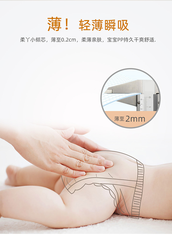 柔丫小傾芯系列嬰兒紙尿褲,薄至0.2cm,柔薄親膚,寶寶屁屁持久干爽舒適