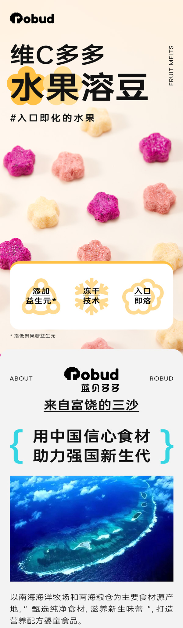 在新時(shí)代消費(fèi)群體的健康理念下,90后00后的家長(zhǎng)們更加注重寶寶入口零食的健康。對(duì)此藍(lán)貝多多兒童零食,一直專(zhuān)注于兒童入口的嬰童零輔食的健康與營(yíng)養(yǎng),深入研究,注重生產(chǎn)的每一個(gè)細(xì)節(jié),用上乘的品質(zhì)征服了眾多消費(fèi)者與經(jīng)銷(xiāo)商的心。這款藍(lán)貝多多維C多多水果溶豆產(chǎn)品更是深受消費(fèi)者的喜愛(ài)。