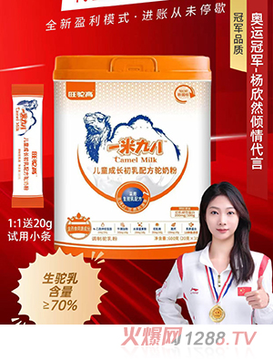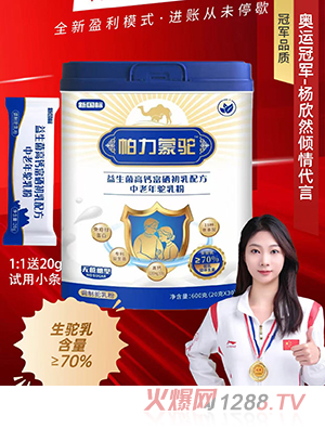 如今,這款兼具品質(zhì)與實(shí)力的帕力蒙駝益生菌高鈣富硒初乳配方中老年駝乳粉,不僅為中老年群體帶來了優(yōu)質(zhì)的營(yíng)養(yǎng)選擇,更開啟了充滿潛力的母嬰招商篇章。代理招募正火熱進(jìn)行中,我們帶來全新盈利模式,為合作伙伴提供廣闊的發(fā)展空間與豐厚的盈利機(jī)會(huì)。更值得信賴的是,產(chǎn)品由奧運(yùn)冠軍傾情代言,憑借冠軍品質(zhì)背書,進(jìn)一步彰顯了產(chǎn)品的卓越實(shí)力與可靠品質(zhì),為品牌增添了強(qiáng)大的市場(chǎng)競(jìng)爭(zhēng)力,也讓合作伙伴在市場(chǎng)推廣中更具優(yōu)勢(shì)。