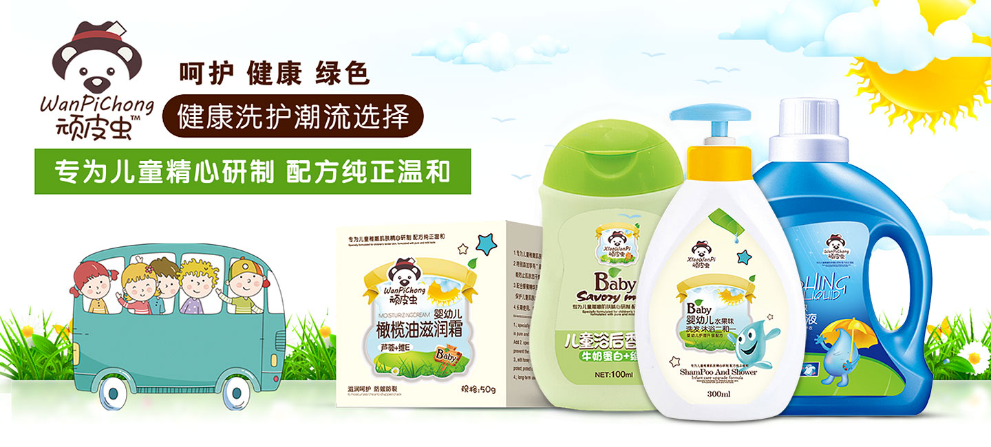 “頑皮蟲”嬰幼兒洗護用品,旗下主營嬰幼兒洗發(fā)露、沐浴露、洗衣皂、洗手液、驅(qū)蚊產(chǎn)品以及潤膚露等產(chǎn)品,呵護寶寶皮膚健康成長,公司產(chǎn)品尋求更放心,只為讓媽媽安心守護!給寶寶提供無盡的關愛!