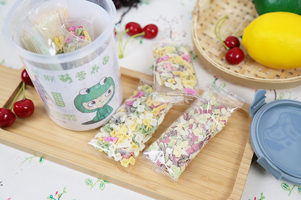 康廣利蔬菜聯(lián)盟營養(yǎng)面系列有細細面、蝴蝶面、顆粒面、方琪面,四種造型,精選優(yōu)質(zhì)小麥粉為原料,三蒸三醒,無鹽不添加,品質(zhì)更高,食用更放心。添加菠菜汁、胡蘿卜汁、火龍果汁、南瓜汁、黑米汁、番茄汁等果蔬汁,與小麥粉完美混合出多種營養(yǎng)和不同口味。