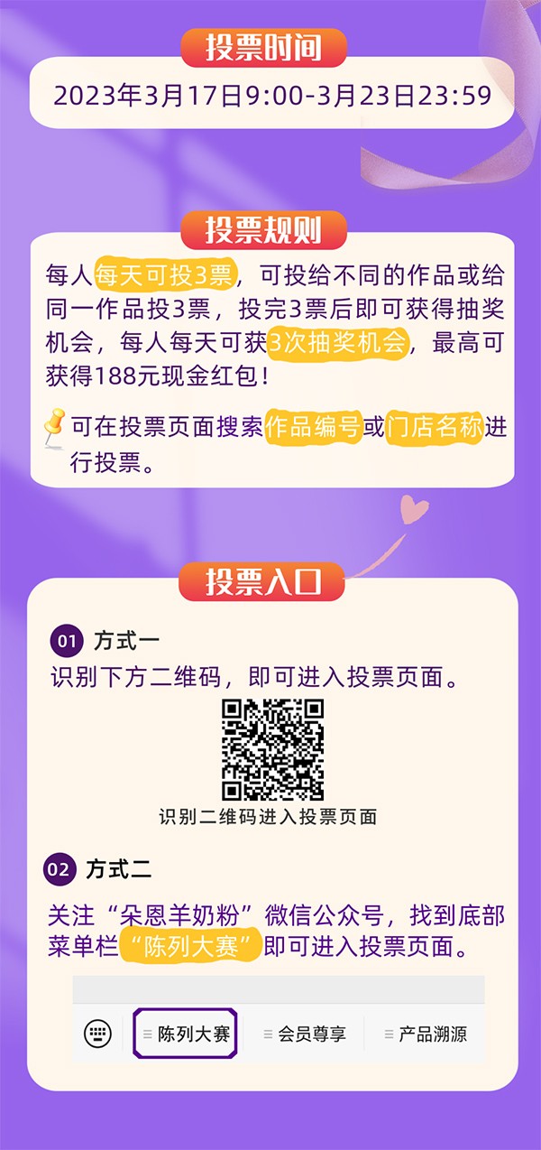 朵恩百佳創(chuàng)意陳列大獎賽開始投票啦!參與投票贏最高188元現(xiàn)金紅包!